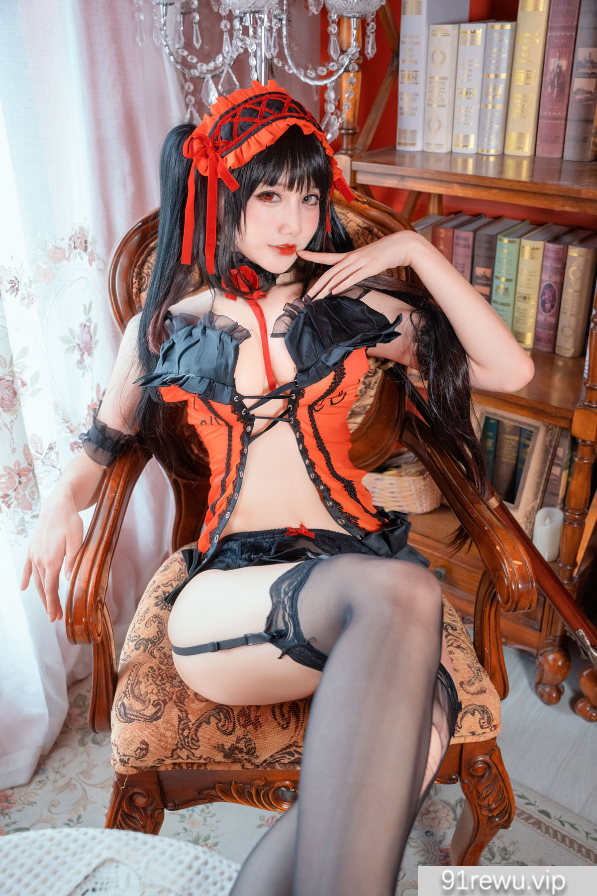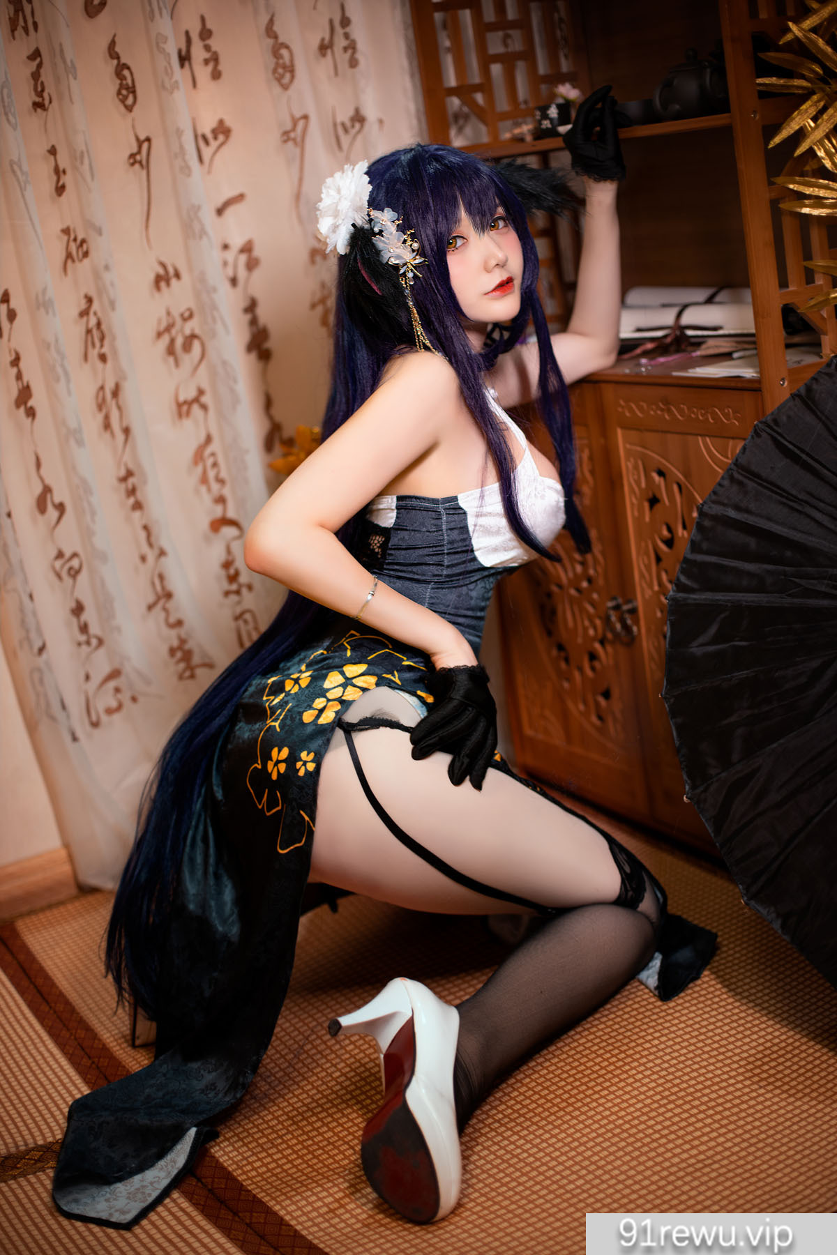 仙九Airi目前在B站直接游戏,知名Coser,完美的修长腿型